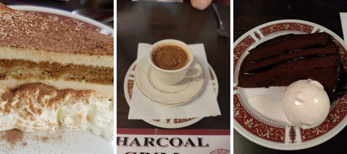 Charcoal Grill specializes in steak, seafood, and Greek dishes, offering a delightful variety that caters to different tastes.